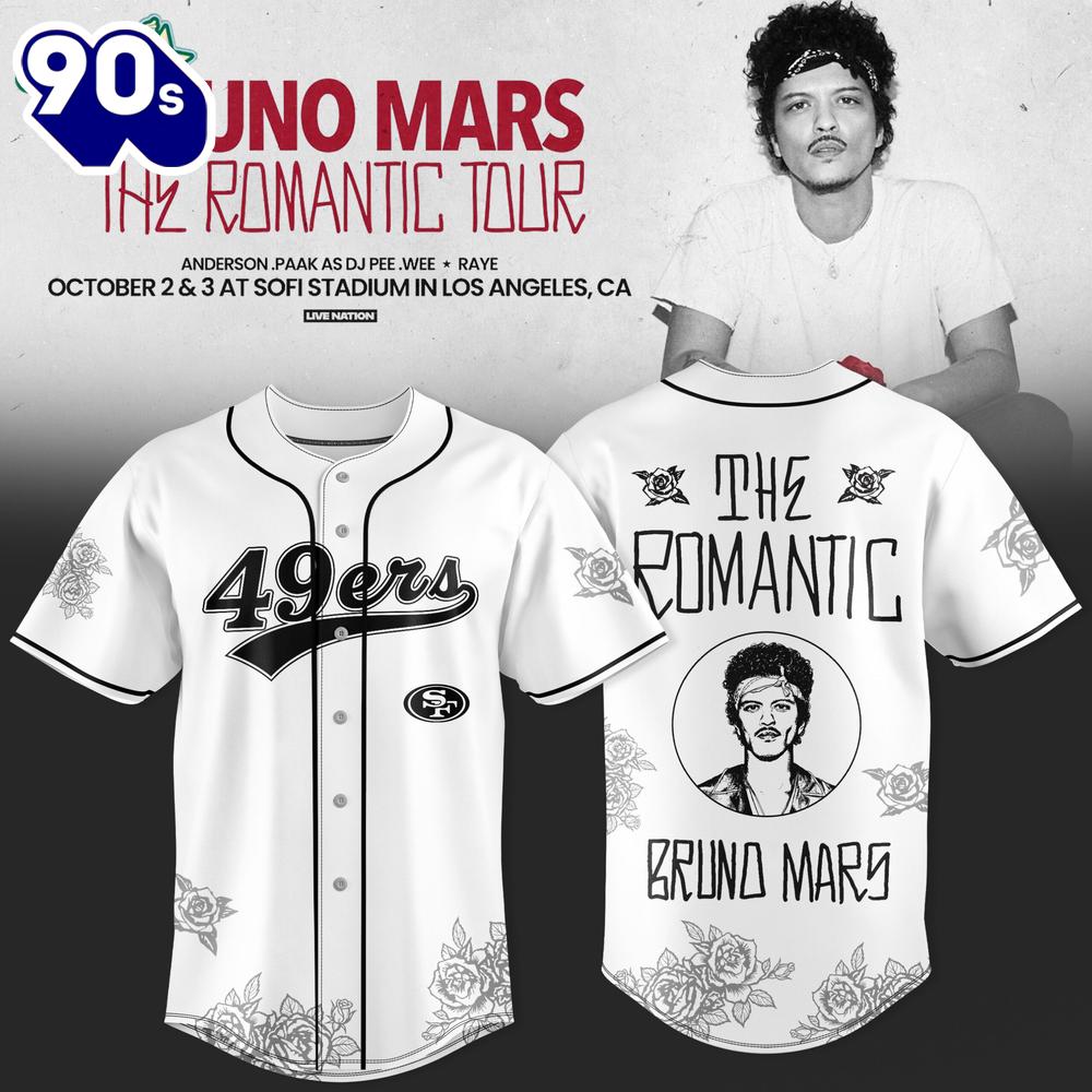 San Francisco 49ers x Bruno Mars – The Romantic Tour Jersey Baseball jersey the epitome of sporty style and unparalleled comfort. Designed for athletes and fans alike, this jersey combines top-notch craftsmanship with superior materials. Made from high-quality, breathable fabric, it ensures maximum breathability during intense gameplay. With its perfect fit and reinforced stitching, this baseball jersey offers exceptional durability, withstanding the demands of rigorous training sessions and competitive matches.