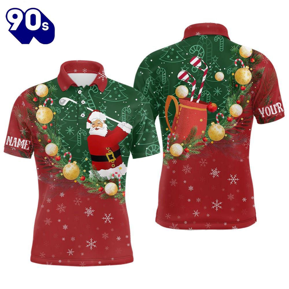 Product details: Santa Playing Golf Red Green Christmas Mens Golf Polo Shirt Custom Gift Christmas