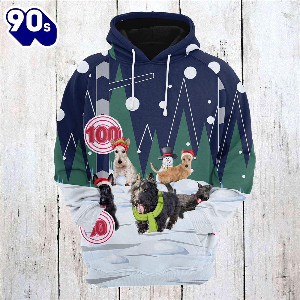 Photos Of Scottish Terrier Playing Christmas Hoodie All Over Print , Pet Christmas 3d Shirt