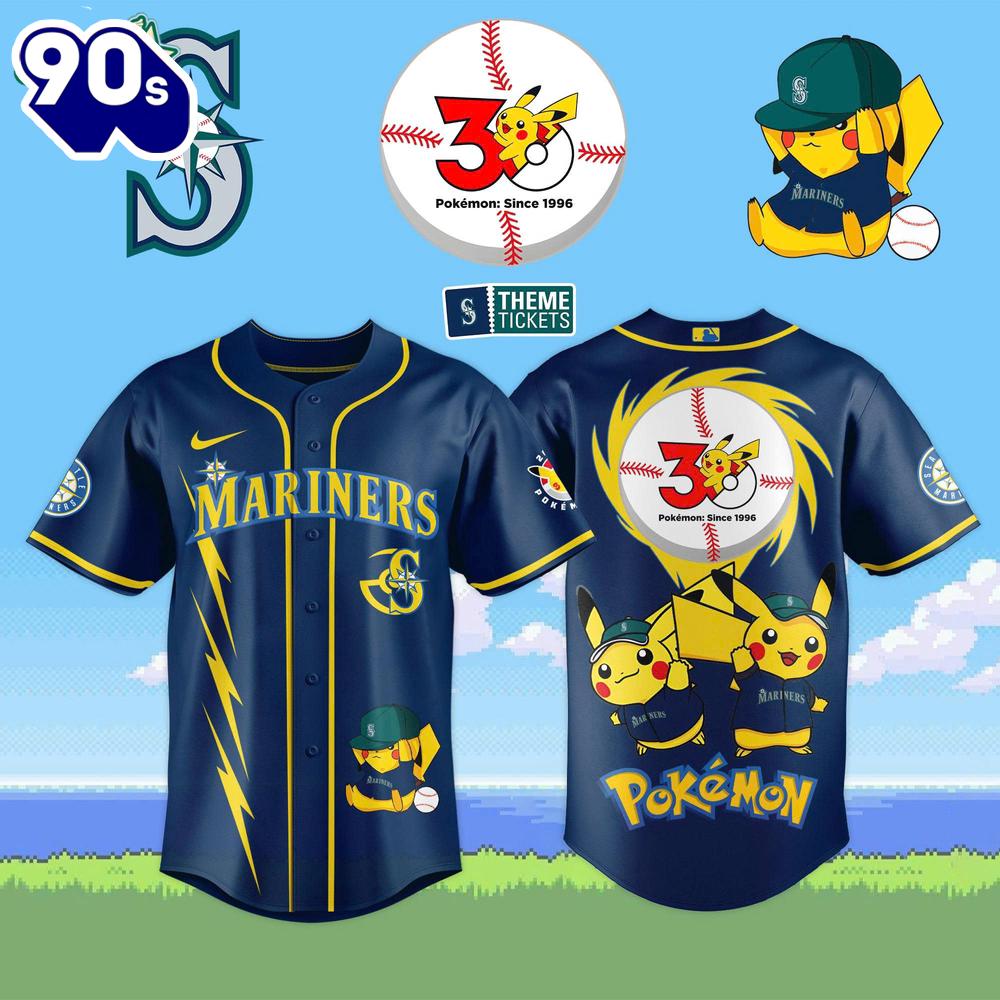 Seattle Mariners MLB x Pokémon Celebrates 30 Years Limited Editions Jersey 2026 For Fans Baseball jersey the epitome of sporty style and unparalleled comfort. Designed for athletes and fans alike, this jersey combines top-notch craftsmanship with superior materials. Made from high-quality, breathable fabric, it ensures maximum breathability during intense gameplay. With its perfect fit and reinforced stitching, this baseball jersey offers exceptional durability, withstanding the demands of rigorous training sessions and competitive matches.