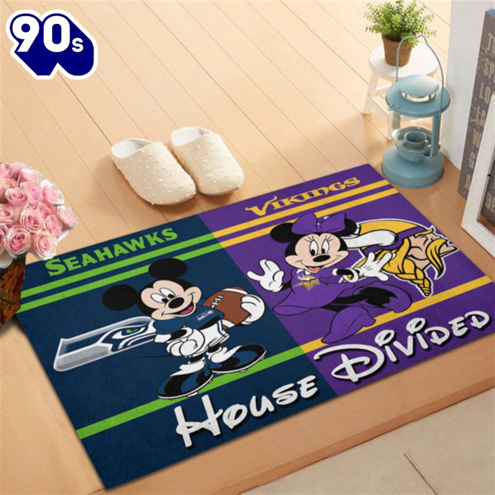 Seattle Seahawks vs Minnesota Vikings Mickey And Minnie Teams NFL House Divided Doormat
