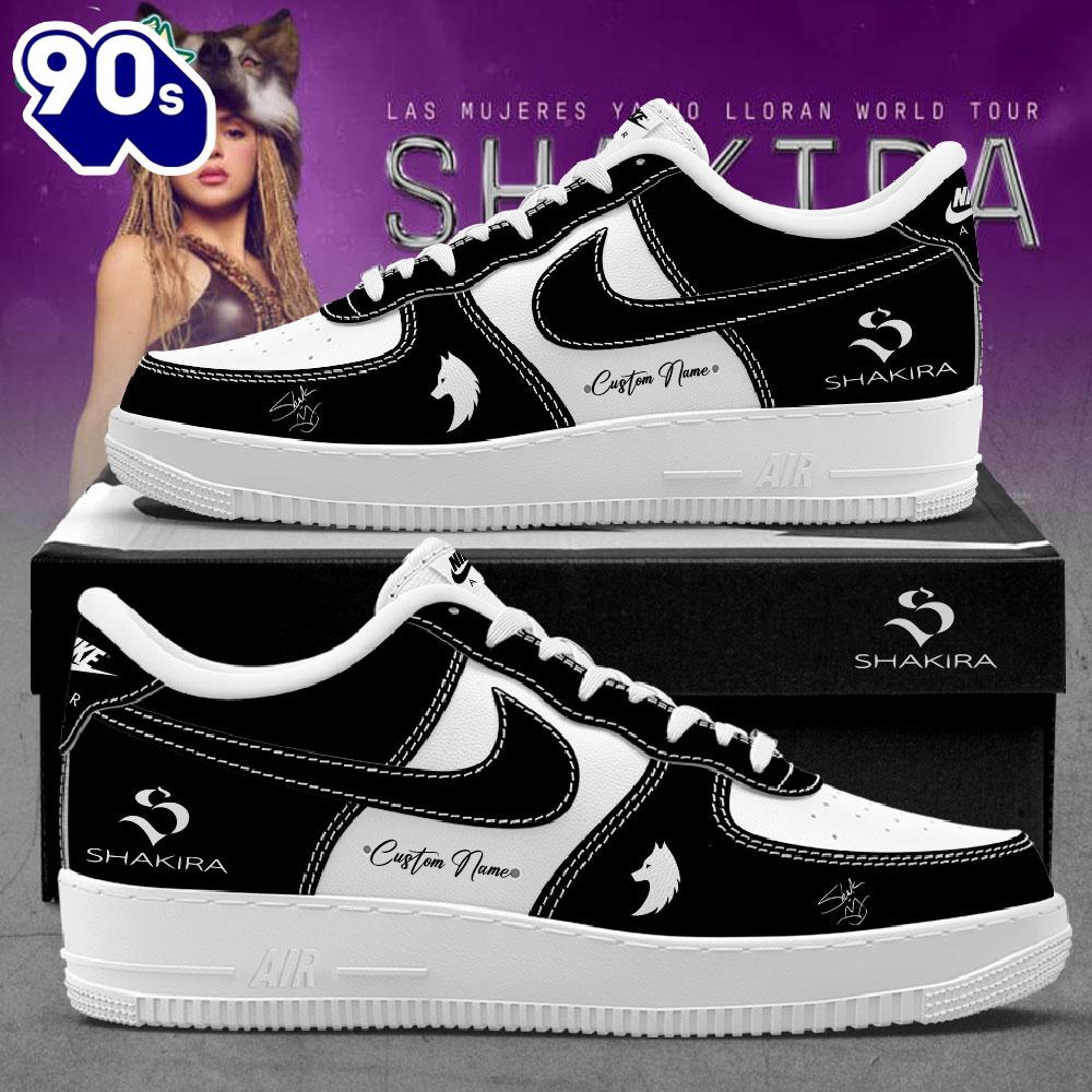 Shakira Las Mujeres Ya No Lloran Tour 2026 Personalized Black Custom Sneakers Air Force 1 shoes are iconic sneakers that blend basketball heritage with streetwear style. Named after the aircraft that carries the President of the United States, these shoes feature a classic silhouette with a padded collar for comfort and a durable leather upper. The Air cushioning technology in the sole provides exceptional support, making them not only stylish but also practical for everyday wear. Over the years, Air Force 1s have transcended their athletic origins, becoming a cultural symbol in music, fashion, and art, often customized in various colors and designs to reflect individual style. Their timeless appeal and versatility ensure they remain a staple in sneaker culture.