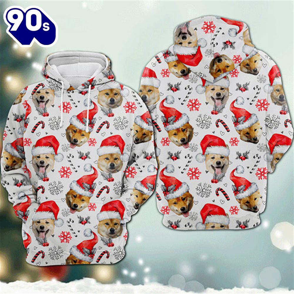 Shiba Inu Christmas Hoodie All Over Print , Pet Christmas 3d Shirt