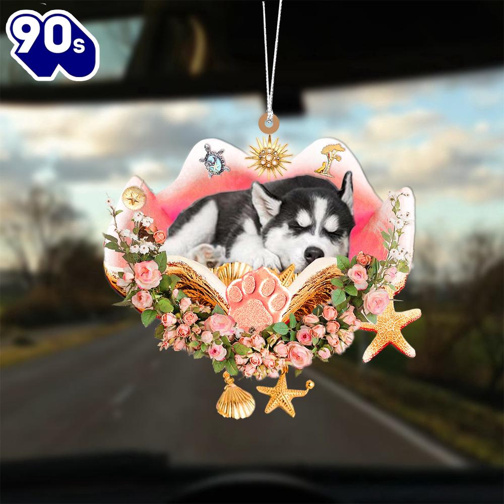 Siberian Husky Sleeping In The Seashell Ornament, Gift For Christmas