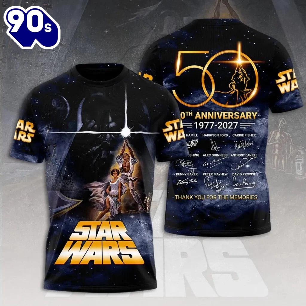 Star Wars A New Hope 50th Anniversary 1997-2027 T-shirt 3D The 3D Shirt is a fashion statement that goes beyond the ordinary. Using advanced printing technology, it brings designs to life with depth and vividness. Crafted from high-quality materials, it offers comfort and durability. The three-dimensional graphics create a captivating effect that’s perfect for casual wear or making a bold statement. Whether you’re expressing your fandom or showcasing your unique taste, the 3D Shirt is a wearable work of art that sets you apart from the crowd.
