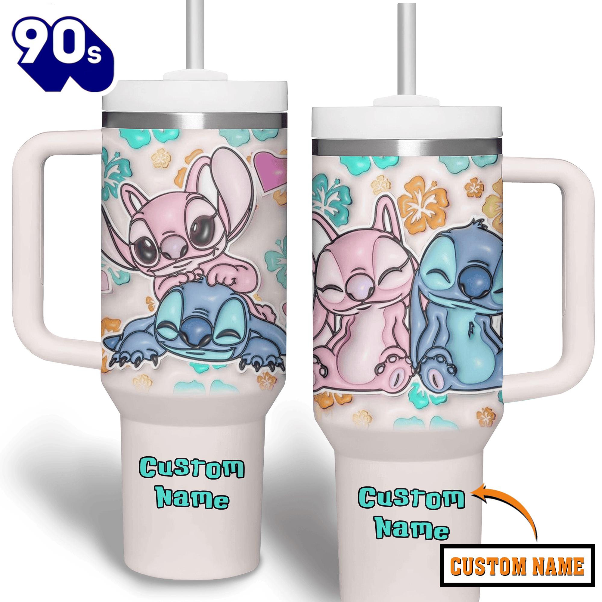 Photos Of Stitch And Angel Cartoon Custom Stanley Quencher 40oz Stainless Steel Tumbler