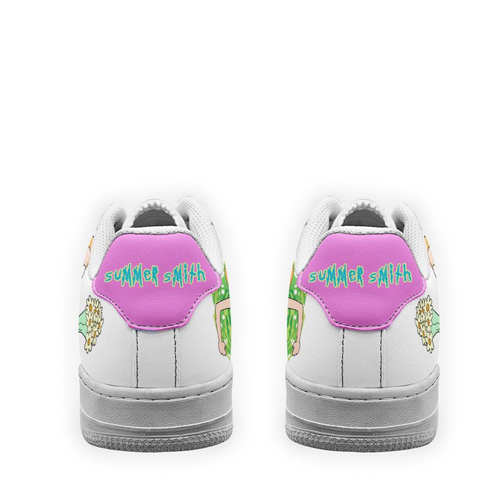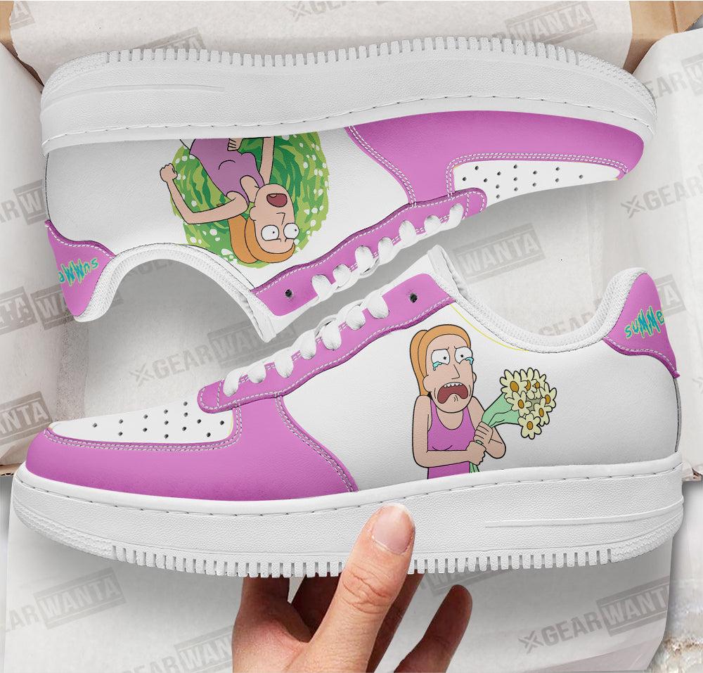 Summer Smith Rick and Morty Custom Air Sneakers Air Force 1 shoes are iconic sneakers that blend basketball heritage with streetwear style. Named after the aircraft that carries the President of the United States, these shoes feature a classic silhouette with a padded collar for comfort and a durable leather upper. The Air cushioning technology in the sole provides exceptional support, making them not only stylish but also practical for everyday wear. Over the years, Air Force 1s have transcended their athletic origins, becoming a cultural symbol in music, fashion, and art, often customized in various colors and designs to reflect individual style. Their timeless appeal and versatility ensure they remain a staple in sneaker culture.
