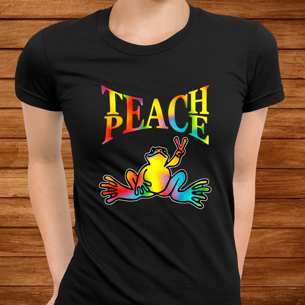 Teach Peace Frog Hippie Vintage Peace Sign Shirt