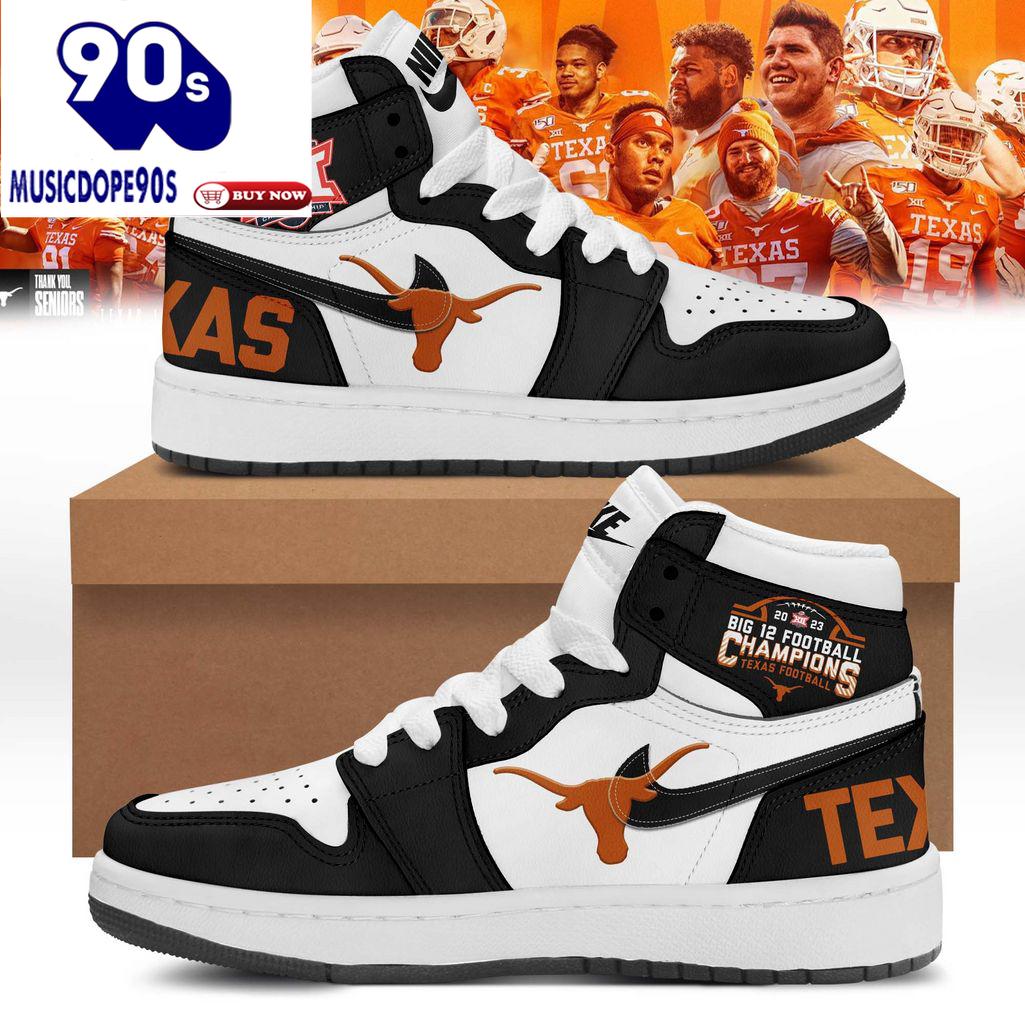 Texas Longhorns Big 12 Football Champions Air Jordan 1 High Top The Air Jordan 1 High is one of the most iconic sneakers in Nike’s history and a staple in sneaker culture. This shoe was first released in 1985 and was specifically designed for basketball legend Michael Jordan. Featuring a high-top design, premium leather materials, and the signature Nike “Swoosh” logo, the Air Jordan 1 High offers both optimal comfort and support for athletes. Additionally, it has become a global fashion symbol. Each Air Jordan 1 High iteration comes in unique color combinations and is often released in limited editions, making it a valuable collectible for sneaker enthusiasts.