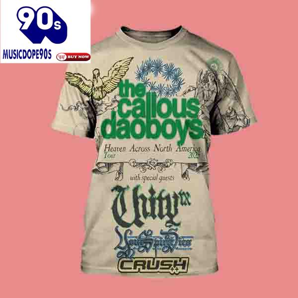 The Callous Daoboys Heaven Across North America Tour 2025 Dates Shirt The 3D Shirt is a fashion statement that goes beyond the ordinary. Using advanced printing technology, it brings designs to life with depth and vividness. Crafted from high-quality materials, it offers comfort and durability. The three-dimensional graphics create a captivating effect that’s perfect for casual wear or making a bold statement. Whether you’re expressing your fandom or showcasing your unique taste, the 3D Shirt is a wearable work of art that sets you apart from the crowd.