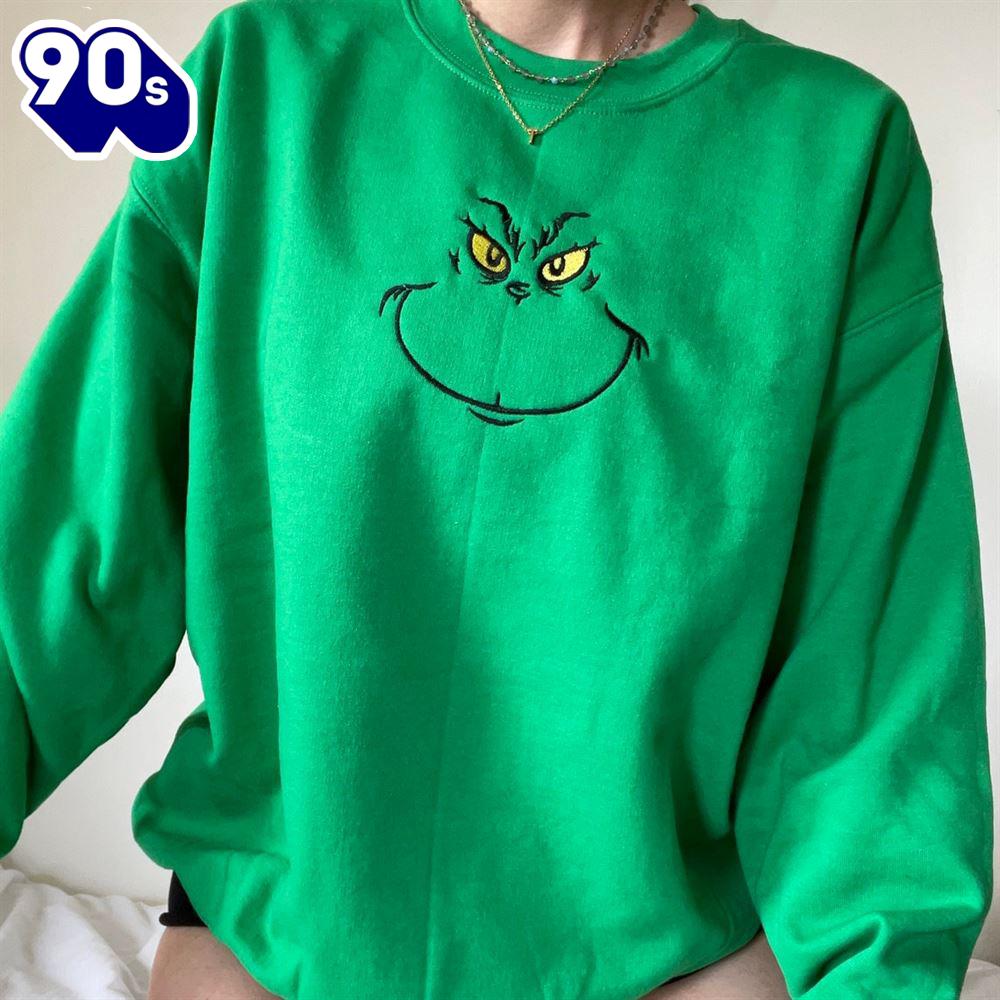 The Grinch Mr Grinch Trendy Cute Holiday Gift Embroidered Sweatshirt Inspired Crewneck Sweatshirt Gift Xmas