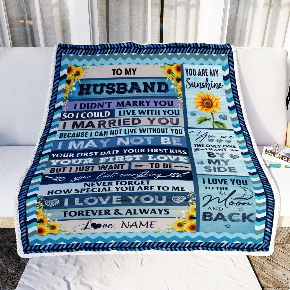 To My Husband From Wife I Could Live With You I Married You I Love You Custom Name Fleece Throw Blanket Valentine Day Indulge in ultimate comfort with our exquisite Blankets! Crafted from the finest materials, these blankets offer a luxurious feel and unparalleled coziness. Designed to keep you snug and warm during chilly nights or lazy afternoons, they come in various sizes, ensuring there’s a perfect fit for every need. With a wide range of colors, textures, and patterns, these blankets complement any decor, from classic to modern, effortlessly adding a touch of elegance to your space. The premium-quality fabric guarantees durability, softness, and easy maintenance, making them a must-have for your home. Wrap yourself in sheer comfort and style with our plush blankets, creating a haven of relaxation and warmth whenever you need it.