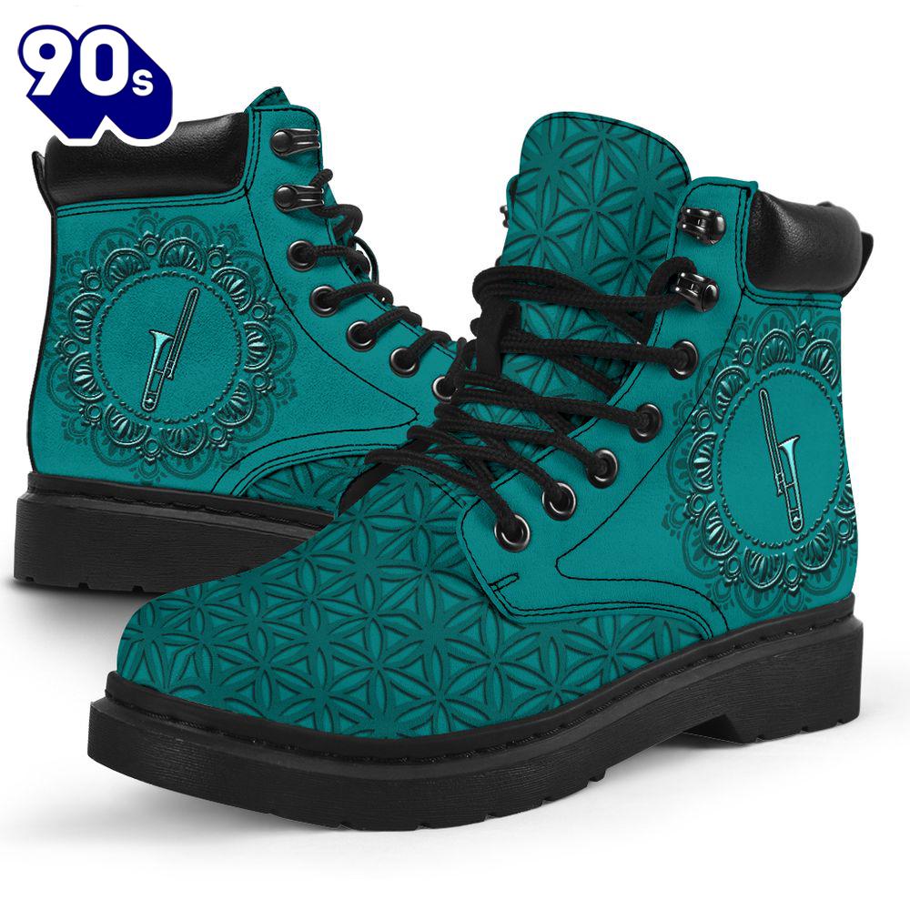 Trombone Flower Pattern Asboots All Season Boots Gift Xmas Boots are versatile footwear designed to provide both style and functionality. Typically made from materials like leather, suede, or synthetic fabrics, they come in various heights, from ankle to knee-high. Boots can be found in numerous styles, including casual, formal, and rugged designs, making them suitable for a wide range of occasions. With features like waterproofing, insulation, and sturdy soles, they offer comfort and protection in various weather conditions. Whether paired with jeans for a casual look or dressed up with a skirt, boots are a timeless addition to any wardrobe, combining practicality with fashion.