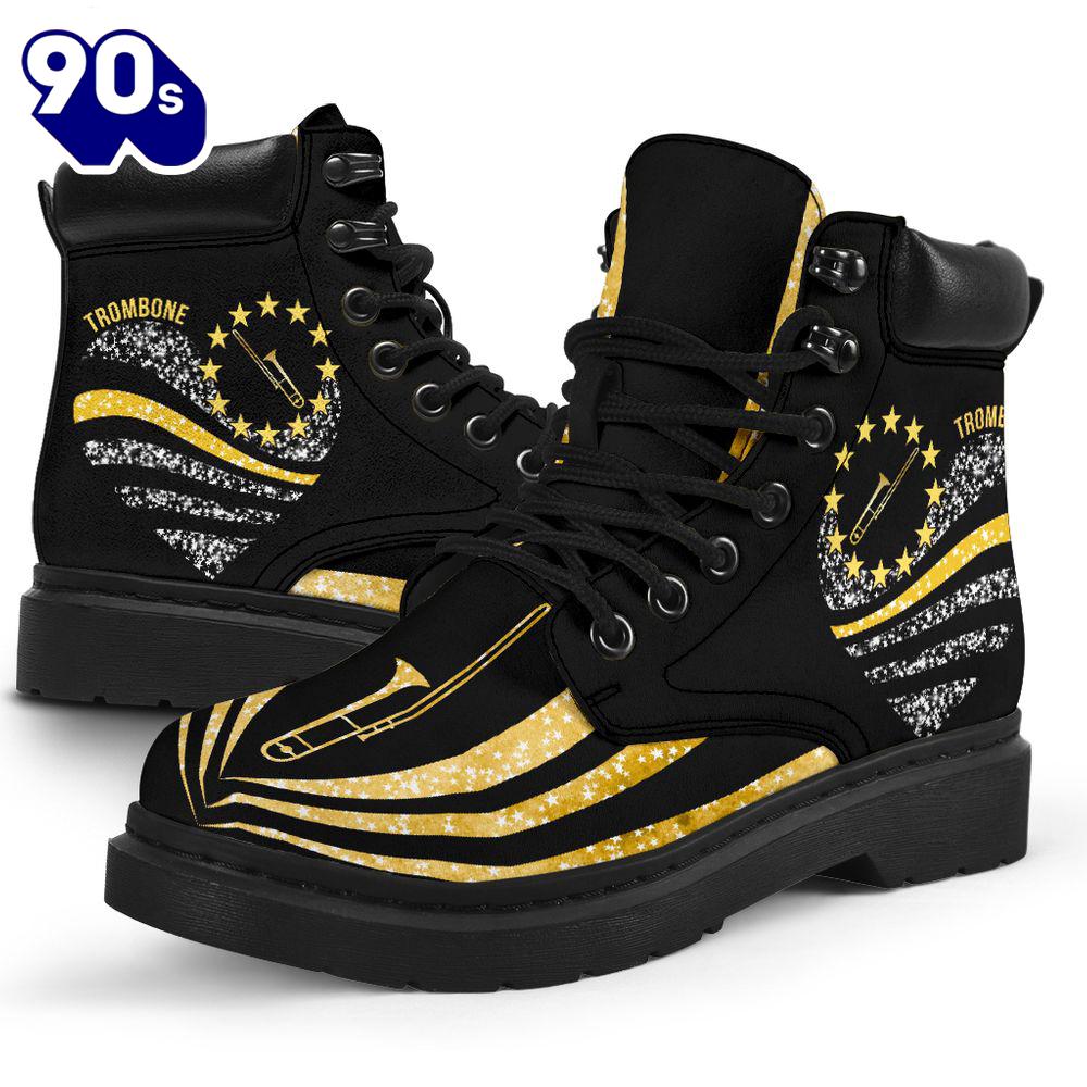 Trombone Wave Heart Asboots All Season Boots Gift Xmas Boots are versatile footwear designed to provide both style and functionality. Typically made from materials like leather, suede, or synthetic fabrics, they come in various heights, from ankle to knee-high. Boots can be found in numerous styles, including casual, formal, and rugged designs, making them suitable for a wide range of occasions. With features like waterproofing, insulation, and sturdy soles, they offer comfort and protection in various weather conditions. Whether paired with jeans for a casual look or dressed up with a skirt, boots are a timeless addition to any wardrobe, combining practicality with fashion.