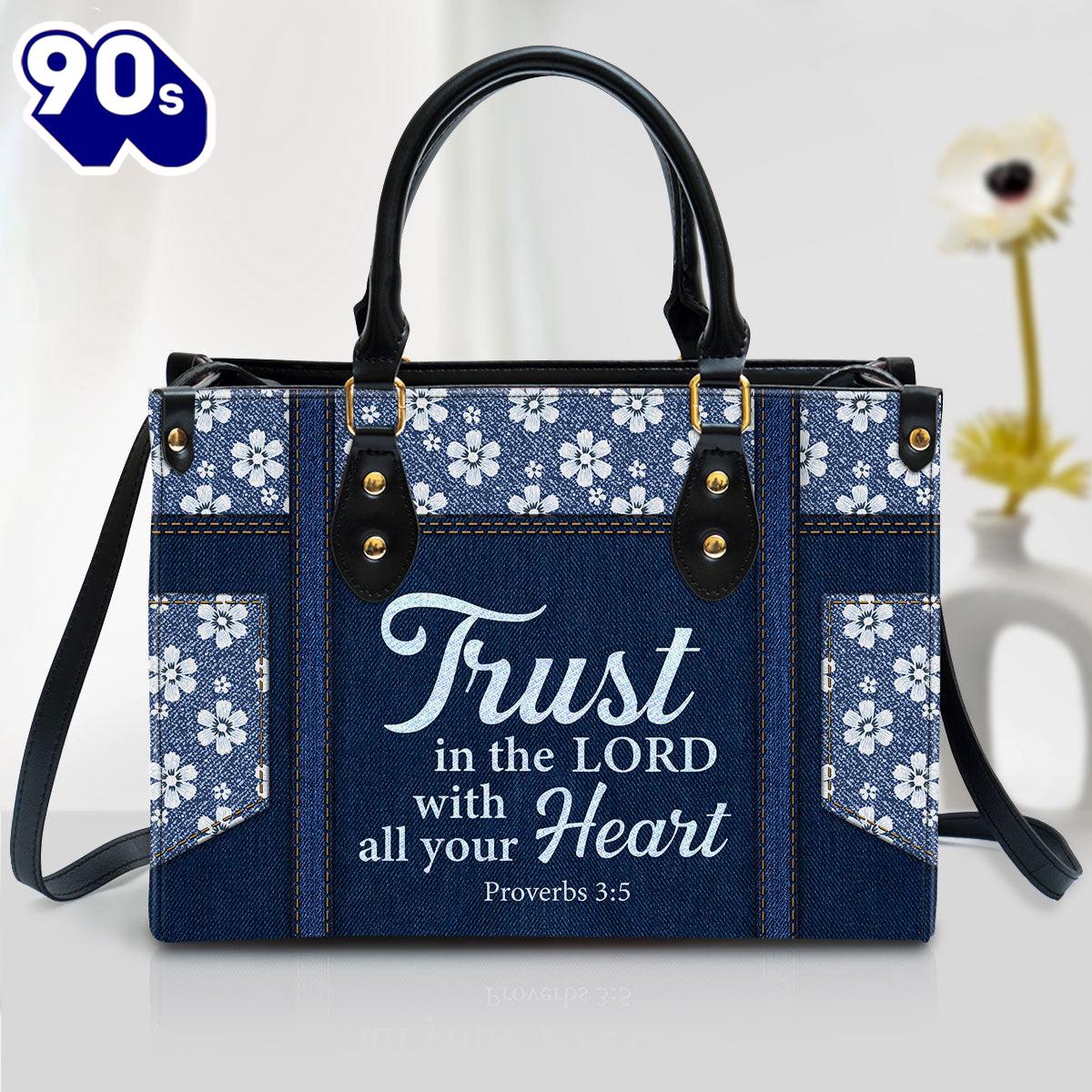 Trust In The Lord With All Your Heart Leather Bag With Handle Christ Gifts Leather Bags Gift For Women Christmas