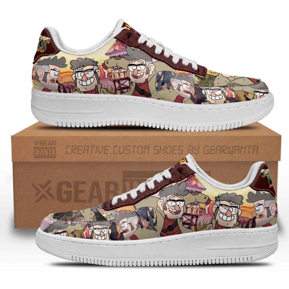 Uncle Ford Gravity Falls Air Sneakers Custom Cartoon Shoes Air Force 1 shoes are iconic sneakers that blend basketball heritage with streetwear style. Named after the aircraft that carries the President of the United States, these shoes feature a classic silhouette with a padded collar for comfort and a durable leather upper. The Air cushioning technology in the sole provides exceptional support, making them not only stylish but also practical for everyday wear. Over the years, Air Force 1s have transcended their athletic origins, becoming a cultural symbol in music, fashion, and art, often customized in various colors and designs to reflect individual style. Their timeless appeal and versatility ensure they remain a staple in sneaker culture.