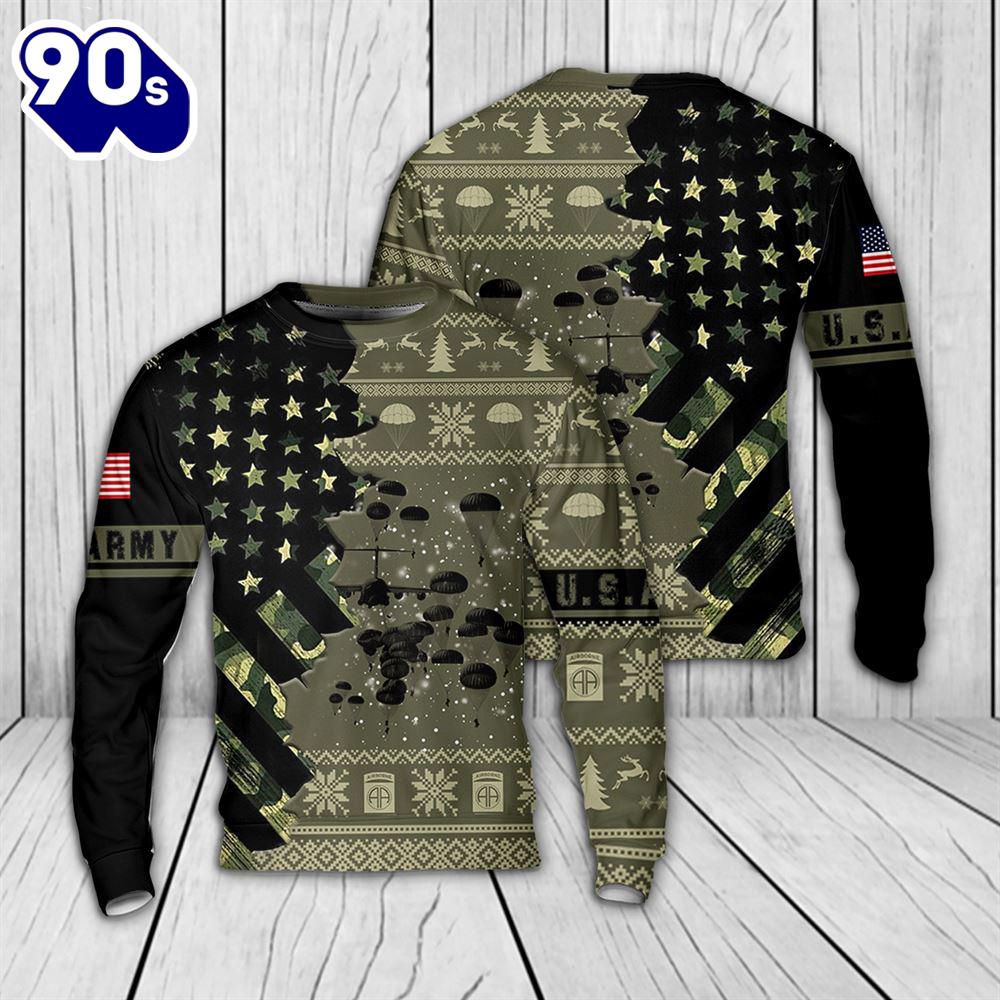 Product Details US Army Paratroopers With The 82nd Airborne Division Parachute Christmas Sweater 1