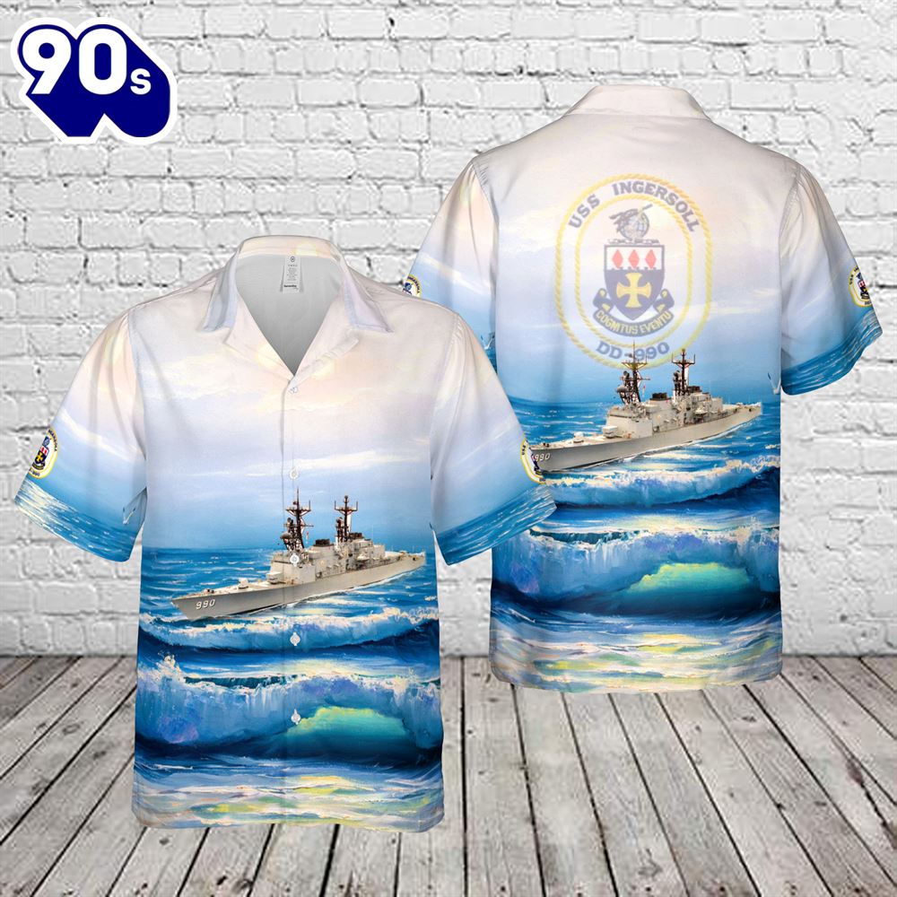US Navy USS Ingersoll (DD-990) Hawaiian Shirt The Hawaiian Shirt is an iconic symbol of laid-back, tropical style. Crafted from lightweight, breathable fabrics, it offers a comfortable and relaxed fit, perfect for warm weather escapades. Its vibrant, exotic patterns evoke the spirit of the Hawaiian islands, radiating a sense of fun and adventure. With its button-up design and collared finish, it strikes the perfect balance between casual and smart-casual attire. Whether you’re strolling along the beach or attending a summer soirée, the Hawaiian Shirt exudes a carefree charm that’s synonymous with leisure and relaxation. Embrace the spirit of aloha and infuse a touch of paradise into your wardrobe with this classic and timeless piece of attire.