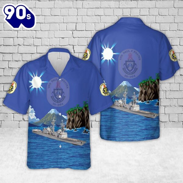 US Navy USS Paul F. Foster (DD-964) Hawaiian Shirt The Hawaiian Shirt is an iconic symbol of laid-back, tropical style. Crafted from lightweight, breathable fabrics, it offers a comfortable and relaxed fit, perfect for warm weather escapades. Its vibrant, exotic patterns evoke the spirit of the Hawaiian islands, radiating a sense of fun and adventure. With its button-up design and collared finish, it strikes the perfect balance between casual and smart-casual attire. Whether you’re strolling along the beach or attending a summer soirée, the Hawaiian Shirt exudes a carefree charm that’s synonymous with leisure and relaxation. Embrace the spirit of aloha and infuse a touch of paradise into your wardrobe with this classic and timeless piece of attire.