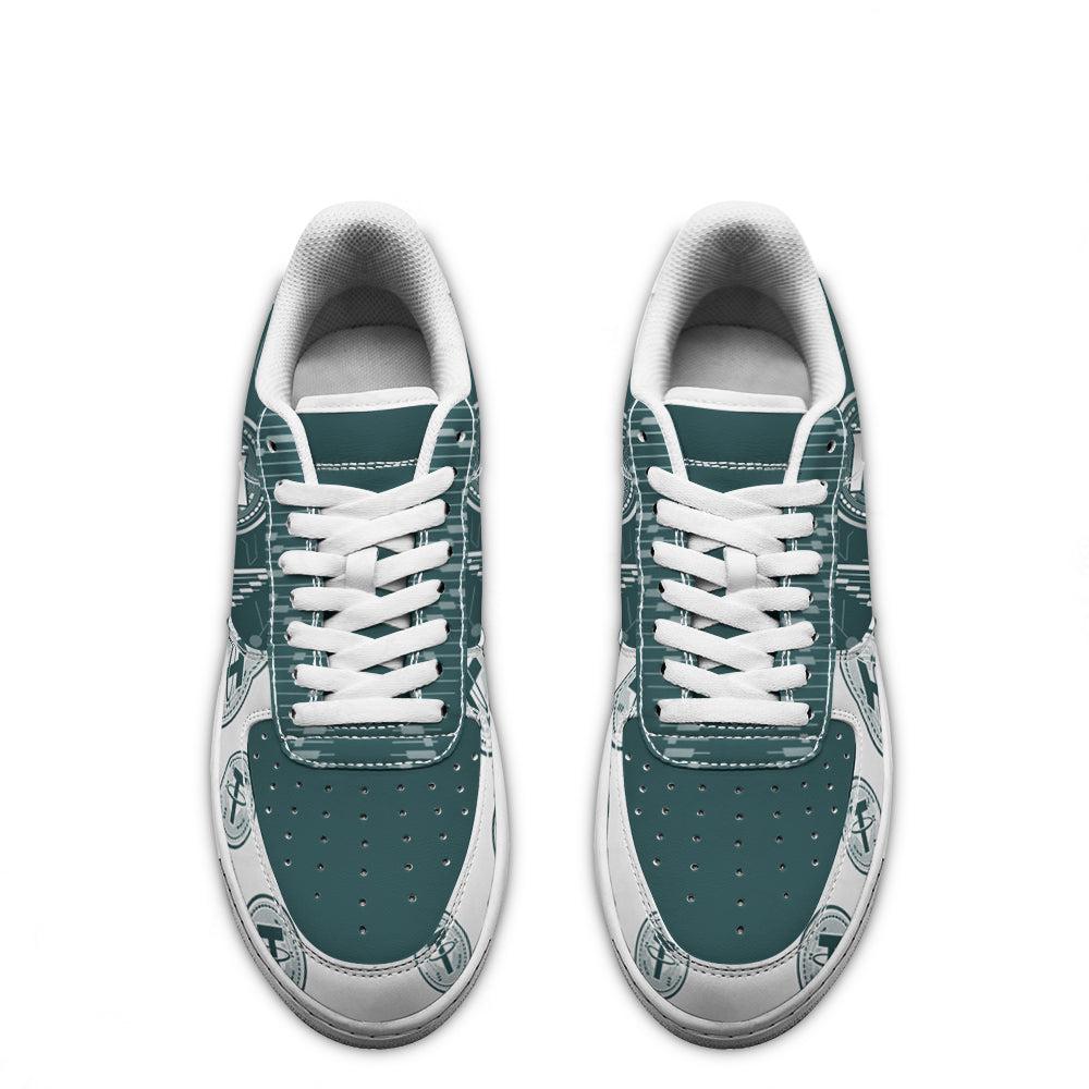 USDT Tether Air Sneakers Custom Sneakers Air Force 1 shoes are iconic sneakers that blend basketball heritage with streetwear style. Named after the aircraft that carries the President of the United States, these shoes feature a classic silhouette with a padded collar for comfort and a durable leather upper. The Air cushioning technology in the sole provides exceptional support, making them not only stylish but also practical for everyday wear. Over the years, Air Force 1s have transcended their athletic origins, becoming a cultural symbol in music, fashion, and art, often customized in various colors and designs to reflect individual style. Their timeless appeal and versatility ensure they remain a staple in sneaker culture.