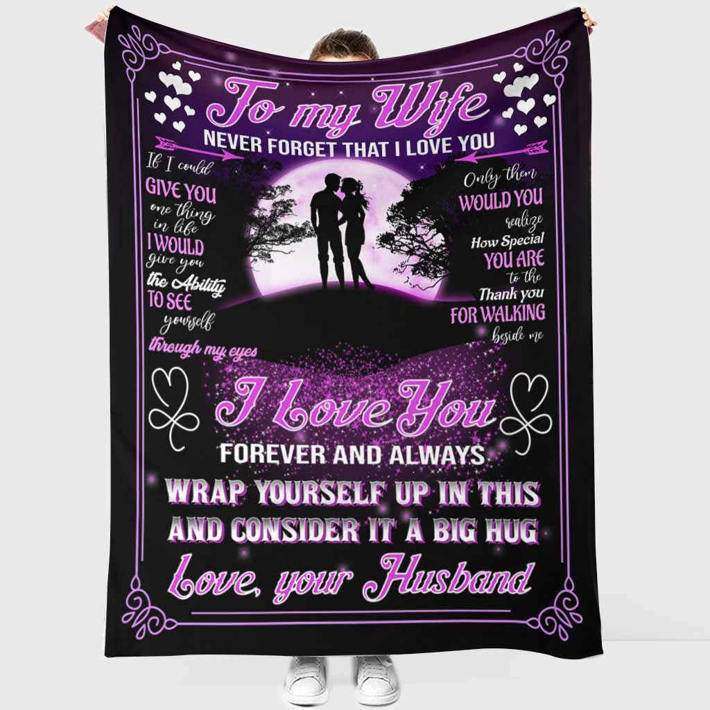 Valentine Day Family To My Wife Lover Fleece Throw Blanket Indulge in ultimate comfort with our exquisite Blankets! Crafted from the finest materials, these blankets offer a luxurious feel and unparalleled coziness. Designed to keep you snug and warm during chilly nights or lazy afternoons, they come in various sizes, ensuring there’s a perfect fit for every need. With a wide range of colors, textures, and patterns, these blankets complement any decor, from classic to modern, effortlessly adding a touch of elegance to your space. The premium-quality fabric guarantees durability, softness, and easy maintenance, making them a must-have for your home. Wrap yourself in sheer comfort and style with our plush blankets, creating a haven of relaxation and warmth whenever you need it.