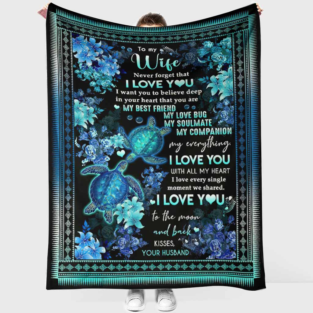 Valentine Day Turtle To My Wife Husband And Wife Style Fleece Throw Blanket