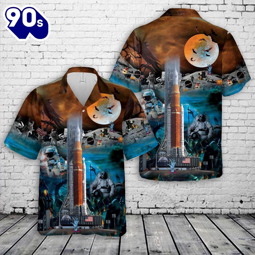 Photos Of Veteran Halloween, Nasa Artemis Sls Moon Rocket Halloween Hawaiian Shirt For Man And Women