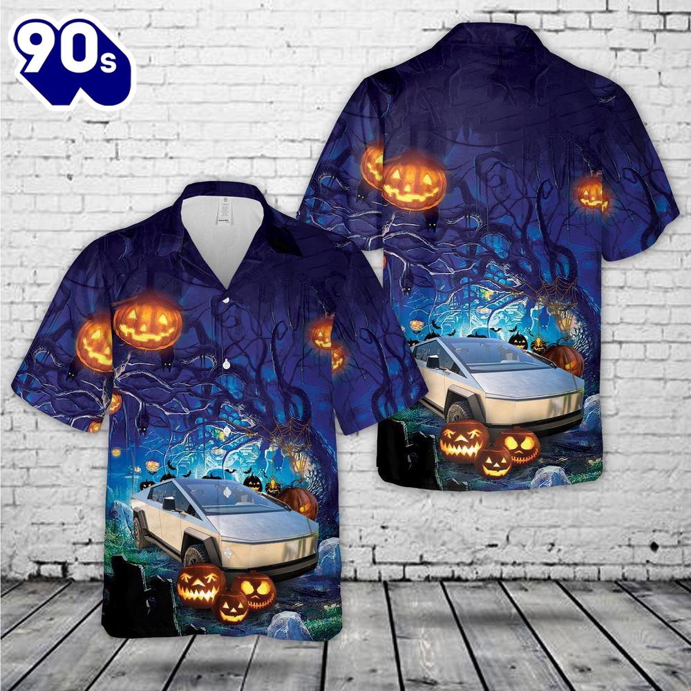 Product details: Veteran Halloween, Tesla Cybertruck Halloween Hawaiian Shirt For Man And Women