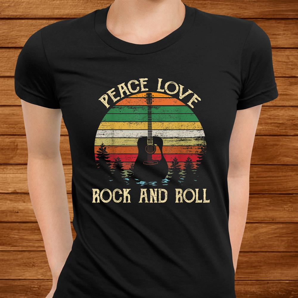 Vintage Peace Love Rock And Roll Guitar Tshirt Hippie Shirt Your everyday style essential. Made with soft, breathable fabrics for comfort all day long. Choose from a variety of designs and colors to showcase your personal style. Perfect for casual outings or layering with other pieces. Versatile, timeless, and a must-have in any wardrobe.