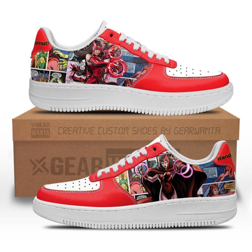 Wanda Maximoff Air Sneakers Custom Superhero Comic Shoes Air Force 1 shoes are iconic sneakers that blend basketball heritage with streetwear style. Named after the aircraft that carries the President of the United States, these shoes feature a classic silhouette with a padded collar for comfort and a durable leather upper. The Air cushioning technology in the sole provides exceptional support, making them not only stylish but also practical for everyday wear. Over the years, Air Force 1s have transcended their athletic origins, becoming a cultural symbol in music, fashion, and art, often customized in various colors and designs to reflect individual style. Their timeless appeal and versatility ensure they remain a staple in sneaker culture.