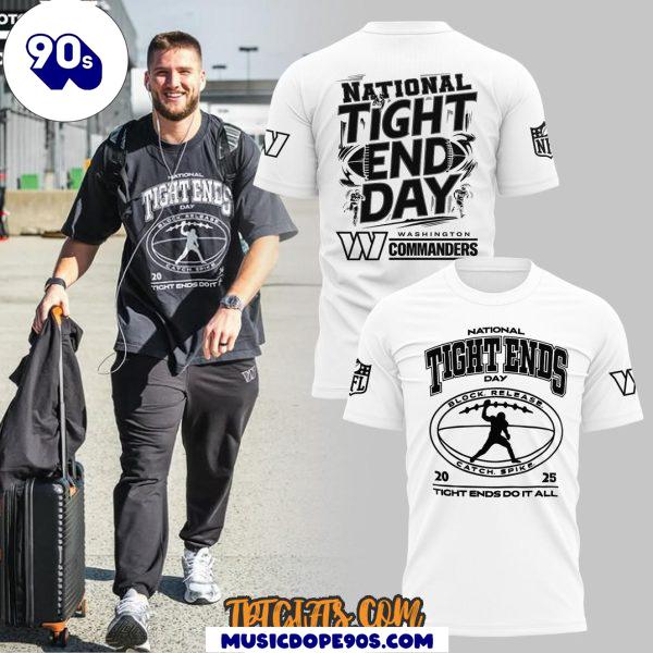Washington Commanders x Happy National Tight End Day 2025 White 3D T-Shirt