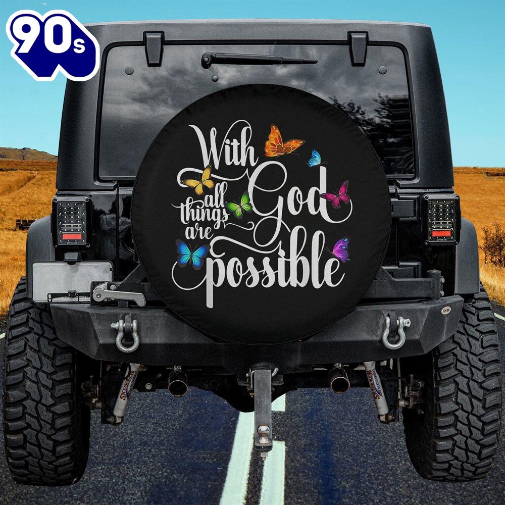 Photos Of With God All Things Are Possible – Religious Butterfly Art Spare Tire Cover – Bible Verse Tire Cover Car Decor
